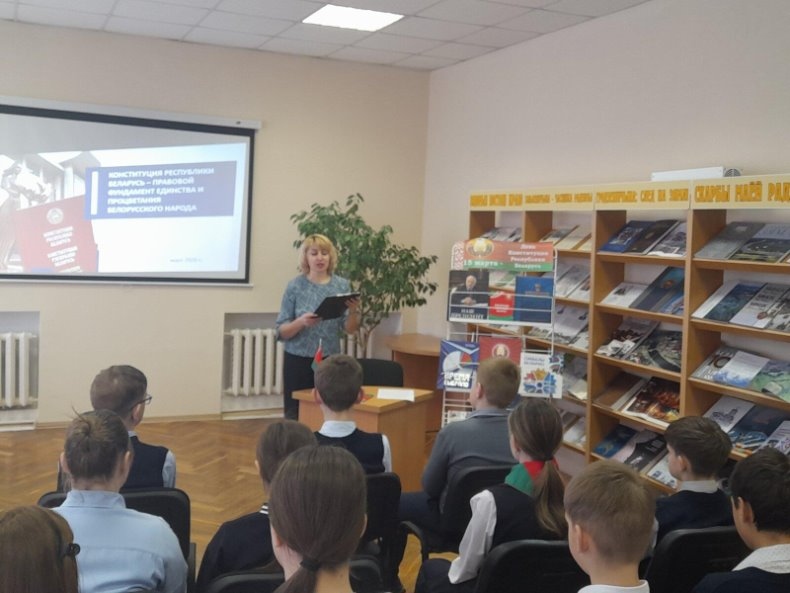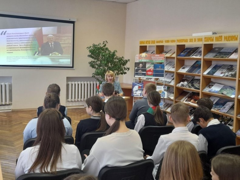 Напярэдадні Дня Канстытуцыі Рэспублікі Беларусь у Зэльвенскай раённай бібліятэцы прайшоў прававы ўрок “Канстытуцыя – закон, па ім мы ўсе жывем” для навучэнцаў 7 “А” класа гімназіі №1. Пачатковым акордам мерапрыемства стаў дзяржаўны гімн Рэспублікі Беларусь. Затым бібліятэкар пазнаёміла дзяцей з гісторыяй узнікнення і развіцця канстытуцыйнага права ў нашай краіне, са структурай Канстытуцыі, аб выбары беларускага народа, зробленым у лютым 2022 года на рэспубліканскім рэферэндуме па пытанні змяненняў і дапаўненняў у Канстытуцыю Рэспублікі Беларусь, і ўнесеных зменах у галоўны дакумент краіны. Падлеткі замацавалі свае веды аб канстытуцыйных правах і абавязках грамадзян Рэспублікі Беларусь, адказаўшы на пытанні прававой віктарыны, пазнаёміліся з матэрыяламі кніжнай выставы “Канстытуцыя – аснова прававой сістэмы Рэспублікі Беларусь”.