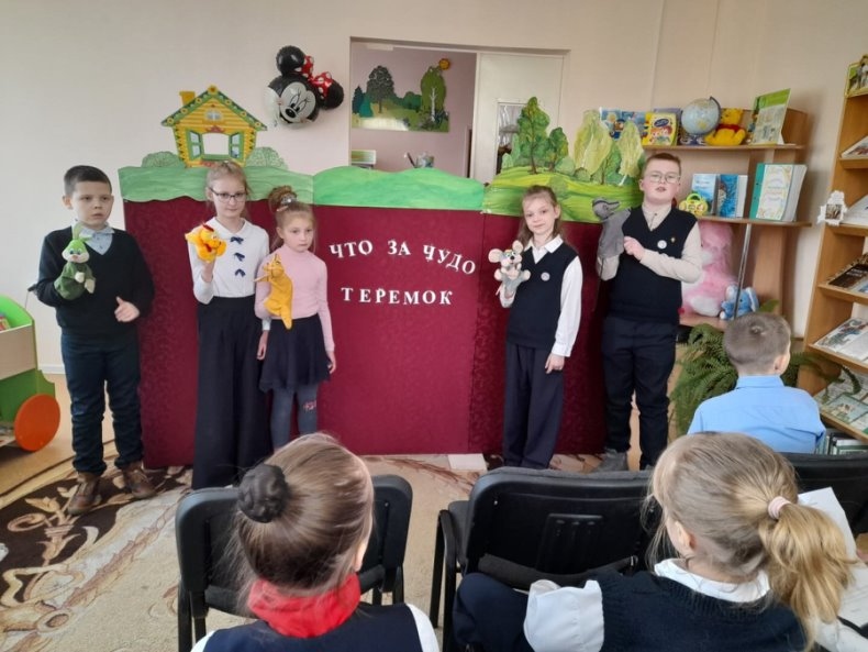 Тыдзень дзіцячай кнігі працягваецца … Сёння ўдзельнікі лялечнага гуртка “Вясёлка” Зэльвенскай раённай бібліятэкі паказалі дзецям лялечны спектакль “Што за цуд Церамок”. Дзеці ўважліва сачылі за дзеяннем казкі. Кожны герой: мышка-нарушка, жаба-квакушка, зайчык-пабягайчык, лісічка-сястрычка, ваўчышча-шэры бачок і касалапы мядзведзь — з’яўляліся са сваёй песенькай. Гэта вельмі радавала і весяліла нашых гледачоў. Лялечны спектакль выклікаў мора эмоцый у юных гледачоў.