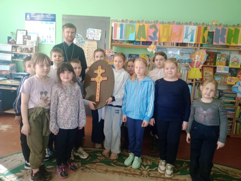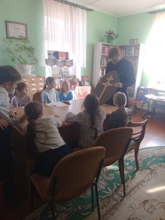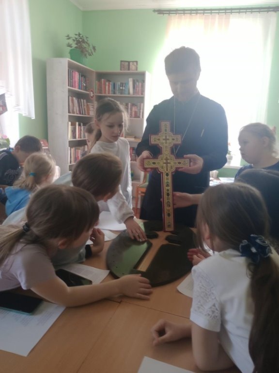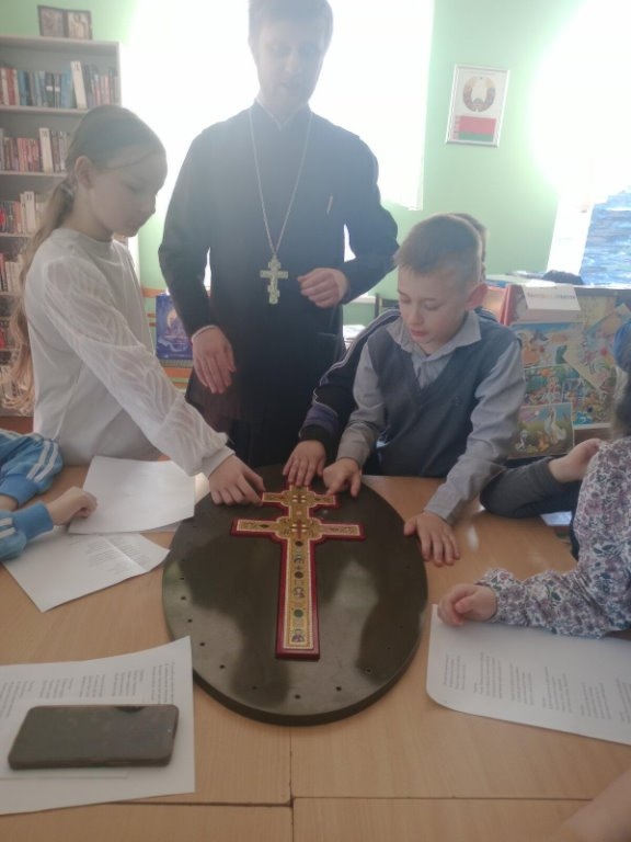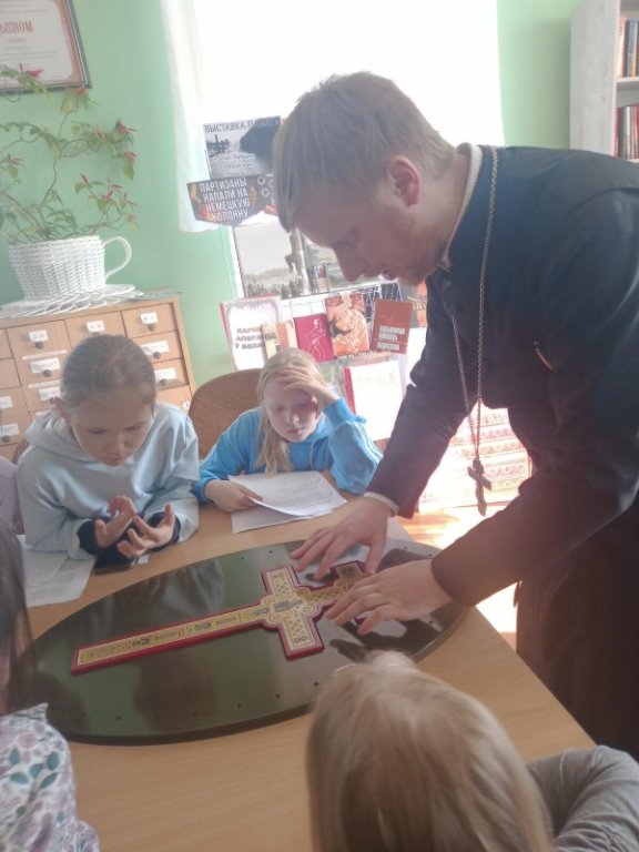 Да 875-годдзя з дня стварэння крыжа прападобнай Еўфрасінні Полацкай у Елкаўскай інтэграванай бібліятэцы для дзяцей з нядзельнай школы цікава і пазнавальна прайшоў урок духоўнасці “Крыж Еўфрасінні Полацкай”. Айцец Віталь расказаў пра стварэнне крыжа і пра тое, праз якія выпрабаванні гэтая святыня прайшла. А так жа дзеці даведаліся, што ў XX ст. брэсцкі майстар Мікалай Кузміч здолеў узнавіць гэтую згубленую святыню.