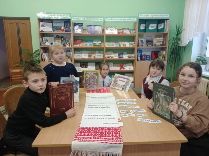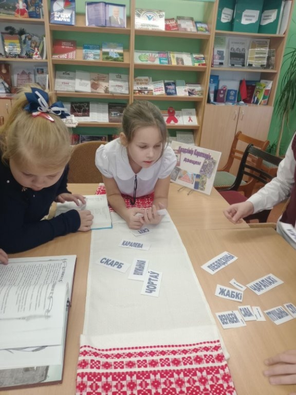 Библиотекарь Елковской сельской библиотеки пригласила своих юных читателей совершить литературное путешествие «По страницам сказок Владимира Короткевича». Дети познакомились с его биографией и творчеством. Присутствующих очень поразило, что Короткевич уже в три с половиной года умел читать, а в шесть писал стихи и рассказы. Участники с удовольствием искали произведение по началу, искали лишнего героя сказки, определяли, каким сказкам соответствуют пословицы, составляли названия сказок, искали ответы на вопросы: почему воробей прыгает двумя ногами, почему у совы разноцветные перья др. Все ответы на вопросы дети смогли найти на книжной выставке “Владимир Короткевич – детям”.
