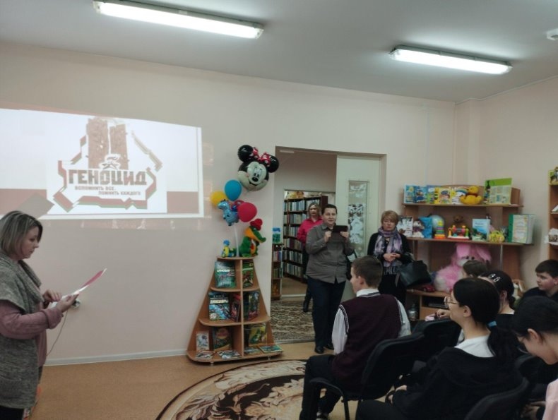 У Зэльвенскай раённай бібліятэцы з мэтай папярэджання злачынстваў генацыду, памінання людзей, якія сталі яго ахвярай, шанавання іх памяці праведзена інфармацыйная пляцоўка “Генацыд: горкая старонка нашай гісторыі”. На мерапрыемстве дзеці даведаліся аб падзеях, якія адбыліся ў нашым раёне ў гады Вялікай Айчыннай вайны, аб жахлівых злачынствах, якія тварылі фашысты, аб месцах пахавання мірных грамадзян, а таксама аб лічбах, якія сведчаць аб маштабах знішчэння фашыстамі жыхароў і населеных пунктаў Зэльвенскага раёна.